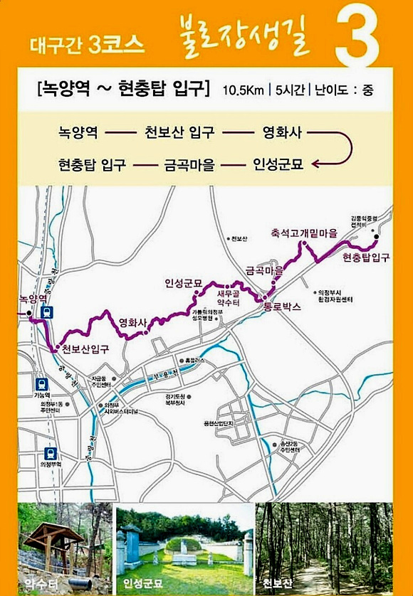 도보구간 :녹양역-하동교-봉화정사입구-갈림길(우측)-영화사-인성군묘-세무골약수터-