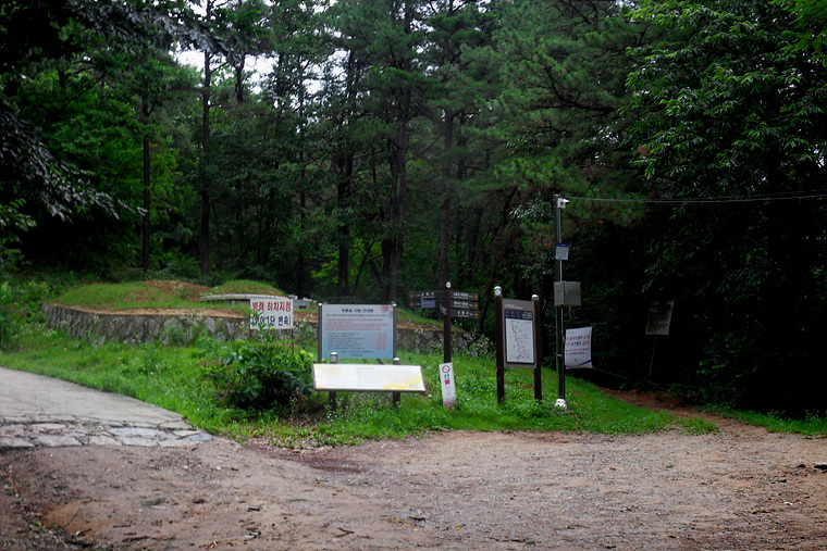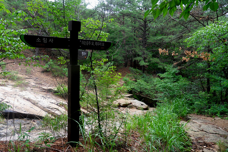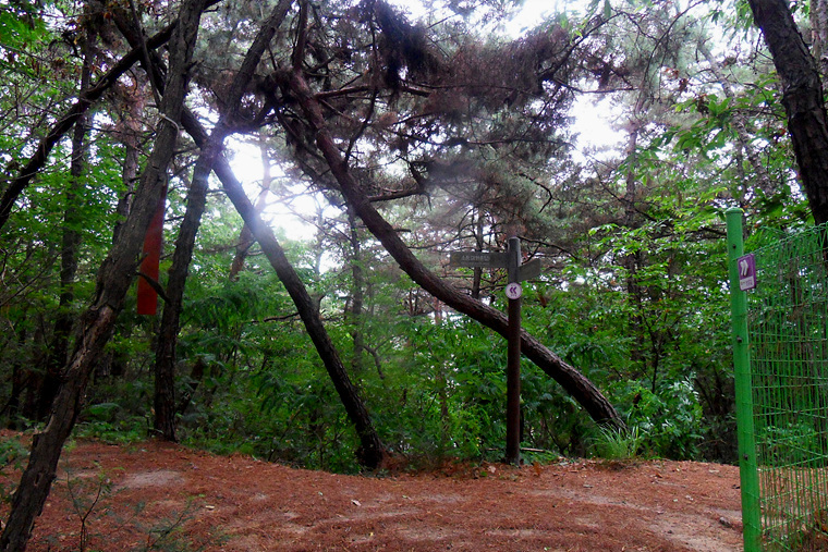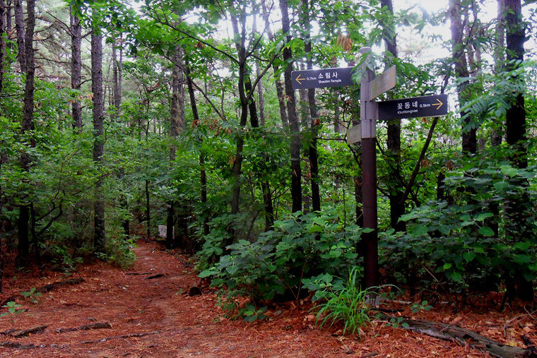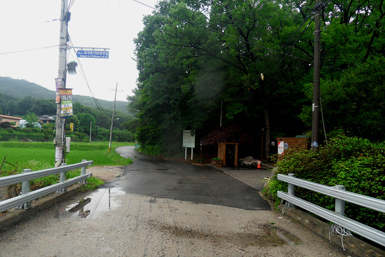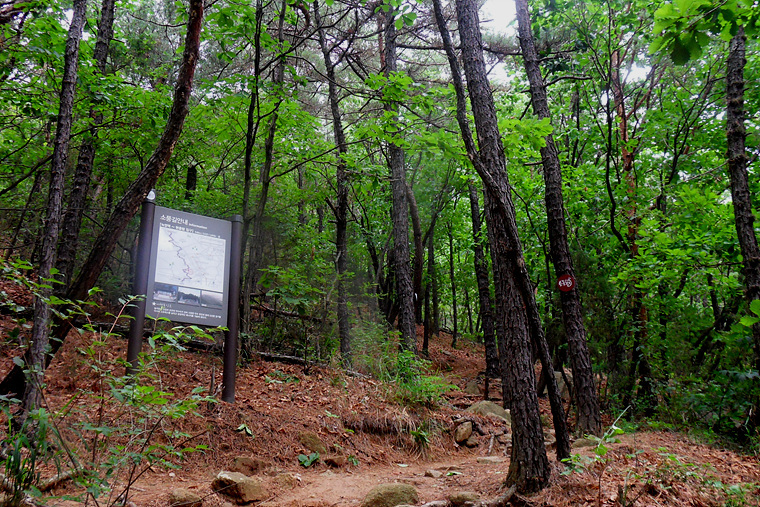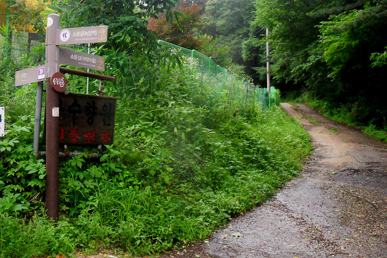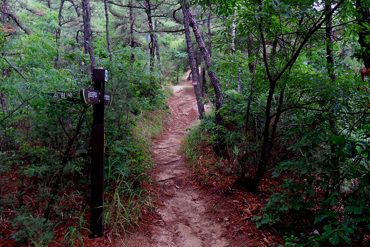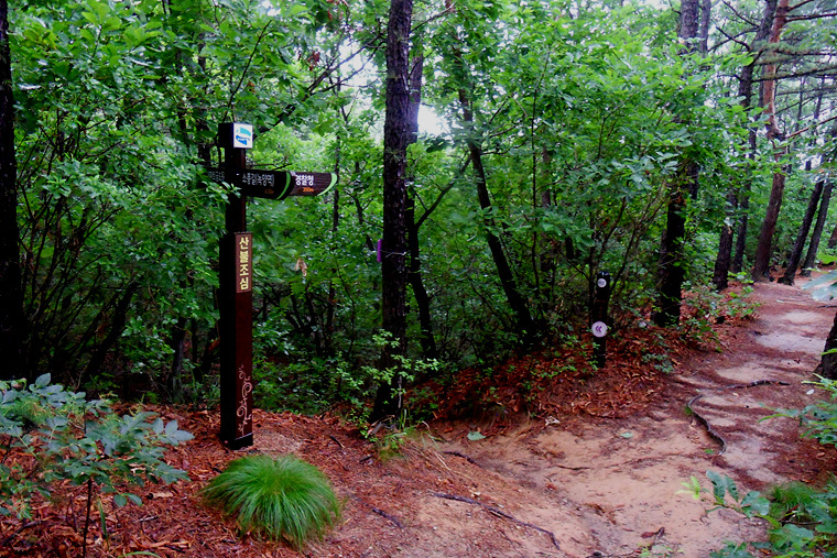 이슬비가 내리기에 불길한 예감으로 갈림길에 도착 이정표를 확인하니