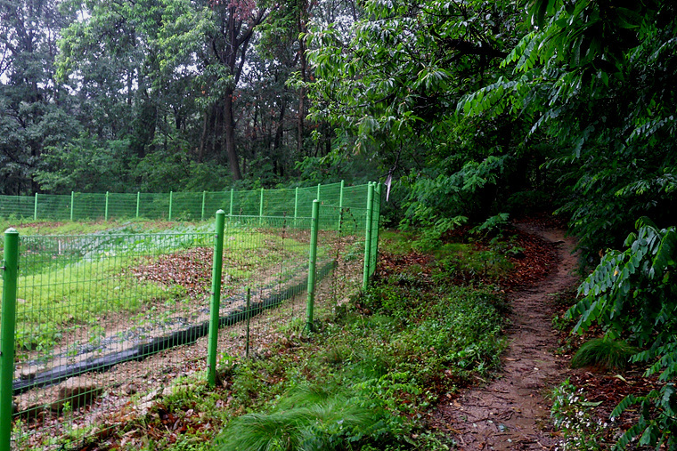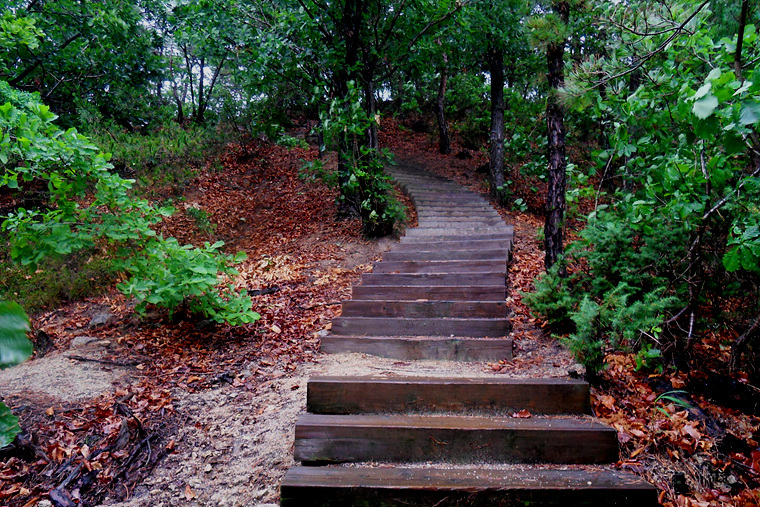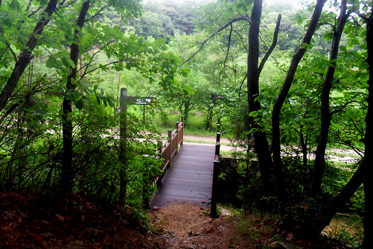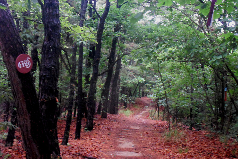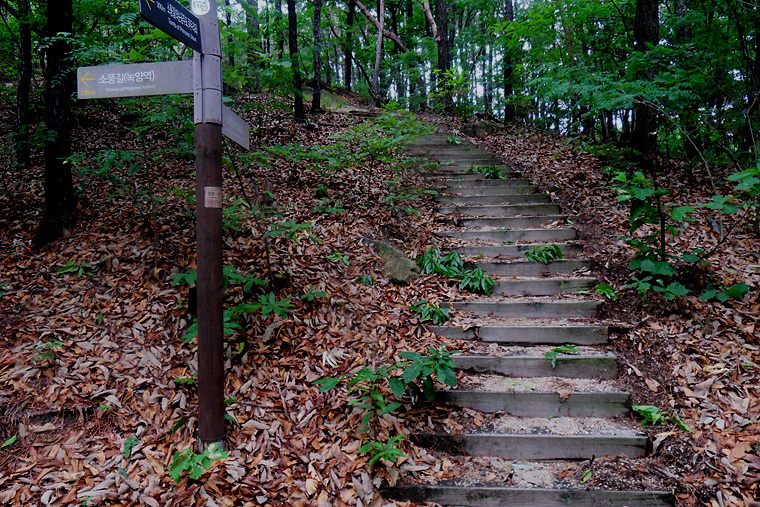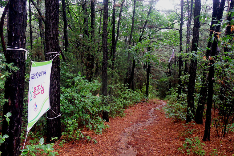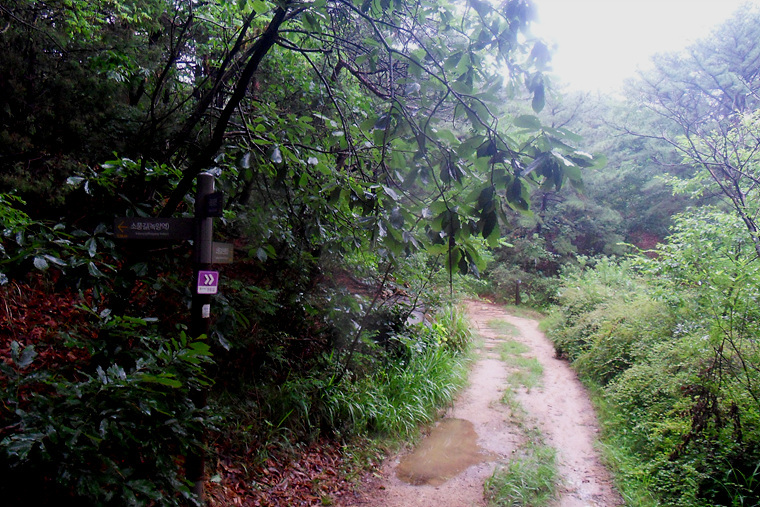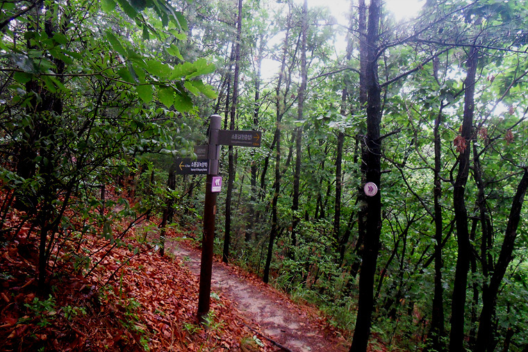 앱코스를 무시하고 이정표대로 진행하며 비에젖은 숲길을 따라 가는데