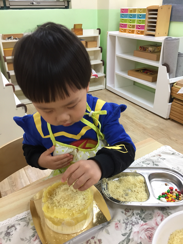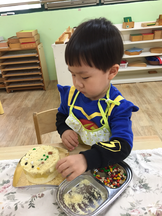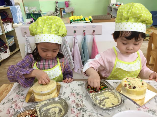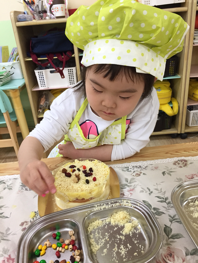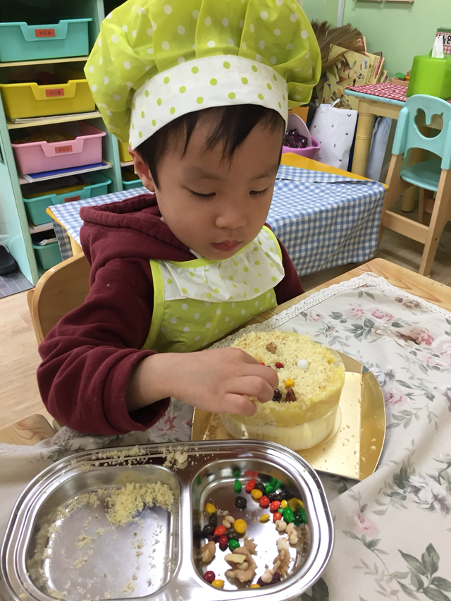 빵위에 숟가락으로 가지런히 펴주고 그위에 빵가루를 뿌려주고 새알쵸콜렛과 견과류로 예쁘게 꾸며주었답니다~~