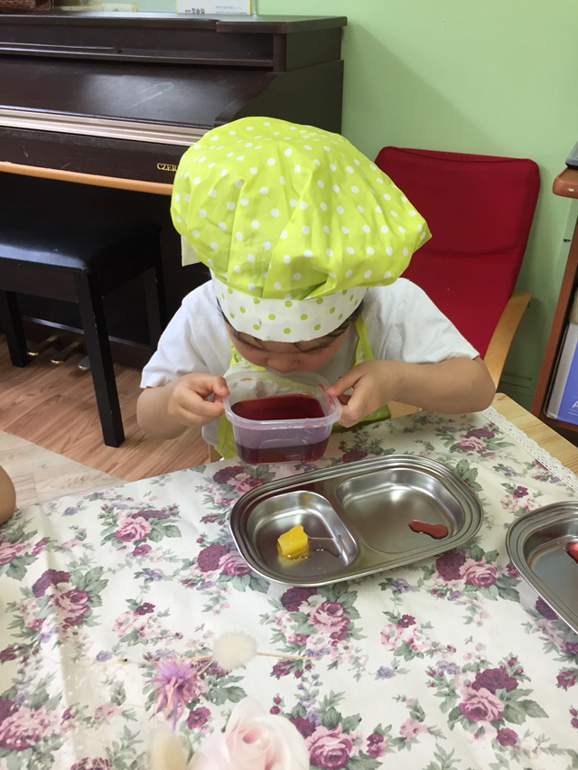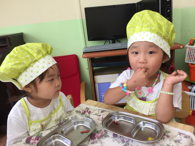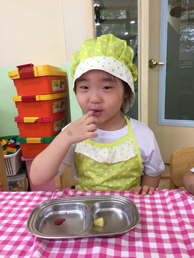 답댓글 작성자햇살반교사 고 승민 작성자 본인 여부 작성자 작성시간 19.08.17 햇살반 친구들과 처음한 요리활동에 기대가 많았던 가원이였던것 같습니다~~ 등원해서 "빨리 하고싶다~" 하며 몇번을 애기 했답니다~~ 손끝이 야무진 가원이는 과일 깍둑썰기도 잘하고 어제는 친구들과 함께 만들어서 맛이 더욱 궁금했는지 과일화채도 참 맛있게 잘 먹었답니다~~^^