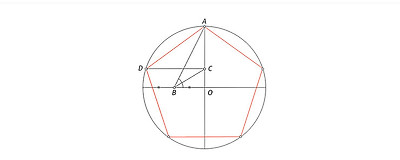 선분 AD의 길이를 옮겨서 다른 점을 그리면 정오각형이 된다.