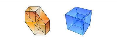 위의 두 그림 모두 4차원 초입방체를 평면에 그려놓은 모습이다.