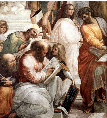 라파엘로의 그림 [아테네 학당]에 등장한 피타고라스의 모습. | |