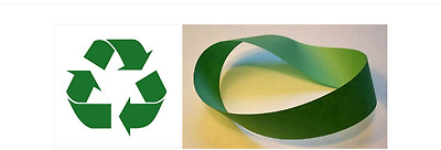 아래 그림은 재활용을 상징하는 마크의 모습이다. 자세히 보면 뫼비우스의 띠(Möbius strip) 모양을 하고 있다. 왜 재활용 마크로 뫼비우스의 띠를 사용하고 있을까? 뫼비우스 띠는 몇 가지 흥미로운 성질을 가지고 있는데, 가장 특징적인 것은 어느 지점에서나 띠의 중심을 따라 이동하면 출발한 곳과 정반대 면에 도달할 수 있고, 계속 나아가 두 바퀴를 돌면 처음 위치로 돌아온다는 점이다. 이 때문에 재활용 마크로 뫼비우스 띠를 사용하고 있는 것이다. 이렇게 보면, 이미 사용한 자원도 다시 사용할 수 있다는 재활용을 상징하는 것으로 뫼비우스의 띠보다 나은 것을 찾기도 어려운 것 같다. | |