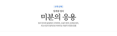 미분이 가능할 경우, f’(a) > 0 이면 기울기가 양수인 직선과 비슷할 테니 증가할 것이고, 반대로 f’(a) < 0 이면 감소할 테니 x=a가 극점일 수 없다는 건 그럴듯해 보인다. ‘비슷해 보인다’는 표현을 쓸 때는 주의해야 하는데 직관과 어긋나는 경우가 있기 때문이다. 이런 애매한 표현을 피해 수학적으로도 엄밀하게 대여섯 줄이면 증명할 수 있는데, 일생에 한 번은 증명해 보는 것도 좋겠다. 어쨌거나 접선을 구하기 위해 발명됐던 미분이 무궁무진에 가까운 응용력을 갖게 된 데는 별 것 아니게 보이는 (이 말 자주 하는 것 같다) 임계점 정리의 공이 컸다. 관심 있어 하는 함수가 최대나 최소를 가질 경우 최댓값이나 최솟값을 구하는 것은 기본일 텐데, 최대인 곳에서는 당연히 극대이고, 최소인 곳에서는 당연히 극소이기 때문에 임계점 정리를 쓸 수 있다. 바로 임계점 정리 덕에 미분이 함수의 최대와 최소를 구하는 강력한 무기로 부상할 수 있었던 것이다. 미분은 더는 접선을 구하는 도구로 만족하지 않는 것이다. | |