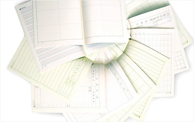 그럼 공책 한 권에는 몇 장의 종이가 들어 있을까? 종이의 매수는 공책의 크기를 정하는 원리와 비슷하다. 전지를 3번 접으면 8절 크기의 용지 8(=23)장이 나온다. 이것을 한 꼭지라고 하는데, 한 꼭지의 가운데를 살짝 접어서 묶으면 16절로 된 16장짜리 공책을 만들 수 있다. 두 꼭지를 묶으면 32장, 세 꼭지를 묶으면 48장이 된다. 초등학생이나 중학생의 공책은 24장인 경우가 많다. 대학생은 필기할 것이 많기 때문에 40장짜리 공책을 많이 쓴다. | |
