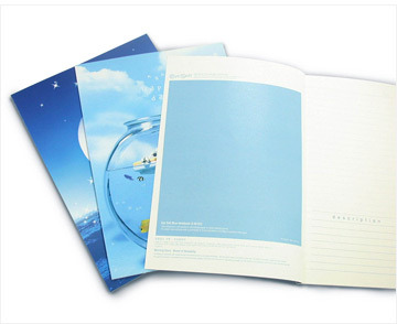 눈의 피로를 덜어주는 기능성을 강조한 공책 제품의 예. | |