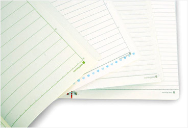 공책은 사용 대상의 연령과 쓰임에 따라 줄의 특징이 다르다. 일반 줄 공책은 초등학교 1, 2학년을 위한 13mm에서부터 8mm까지 줄 간격이 다양하다. |