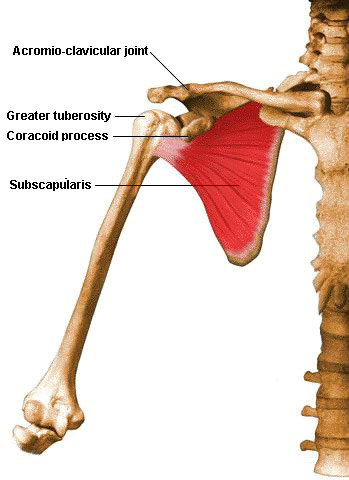 그리고 scapula 안쪽으로 지나는 근육은 subscapularis (견갑하근)이라고 합니다.