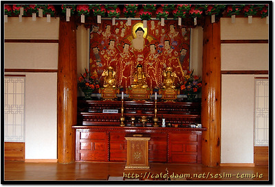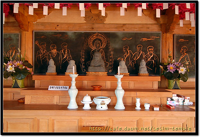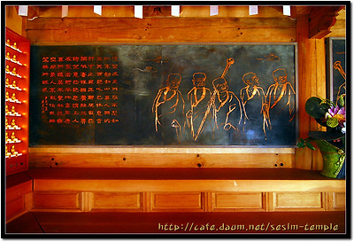 나한전의 벽화는 특이하게 동판에 새겨진 듯 하였다.