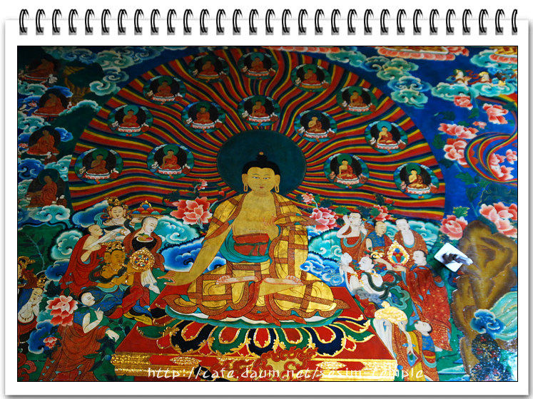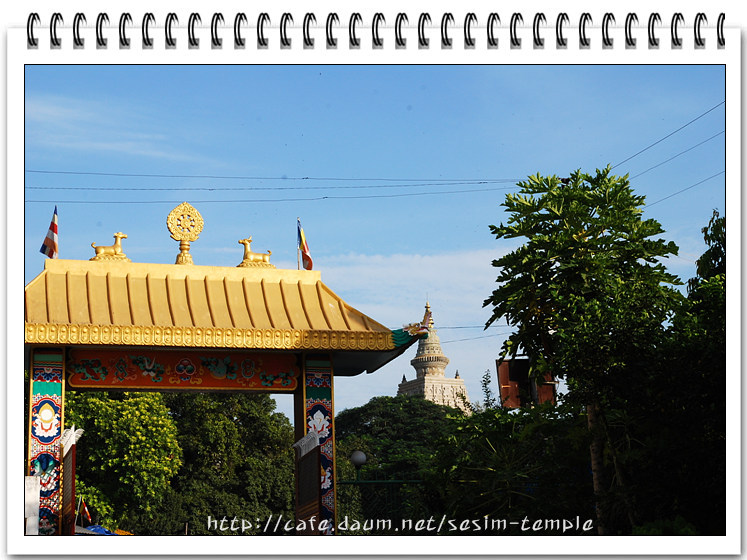 티벳사찰 - 문옆으로 멀리 보이는 것이 부다가야 대탑이다.