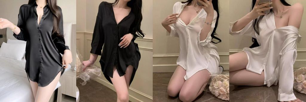 ❤️크고길게입는)하의실종 롱블라우스 - 슬림 실키 1 검정, 흰색