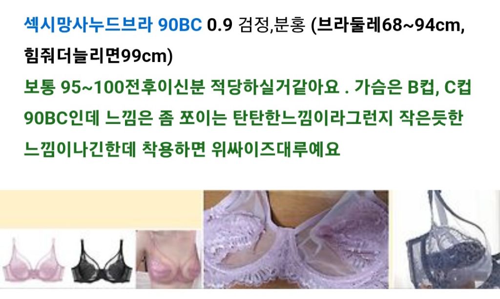 ❤️섹시망사 누드브라 90C 0.9 검정