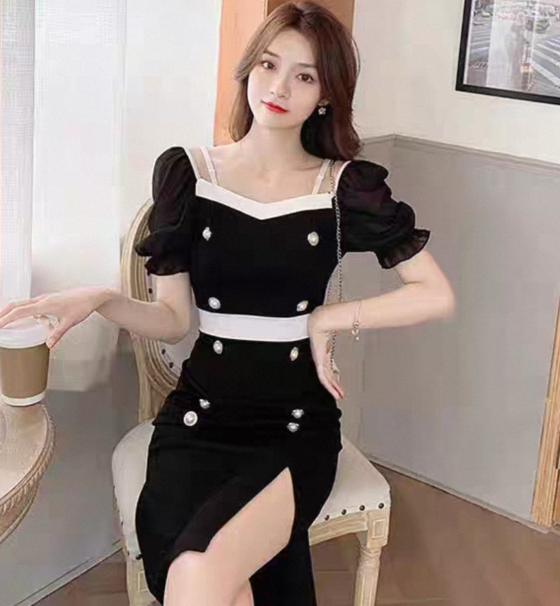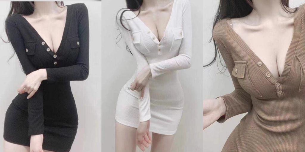 ❤️ 가슴노출 깊은버튼 골지원피스 1.2 검정, 흰색,베이지