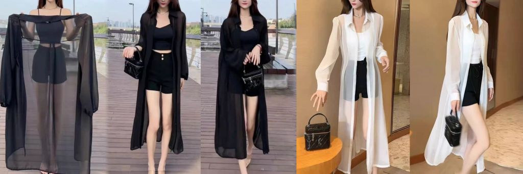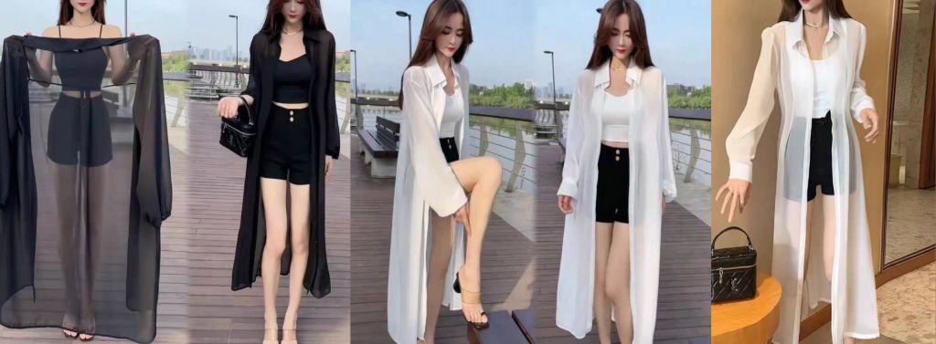 ❤️씨쓰루 카라블라우스식 롱 몸가리개 검정,흰색 1.2 (길이 : 종아리중간까지))