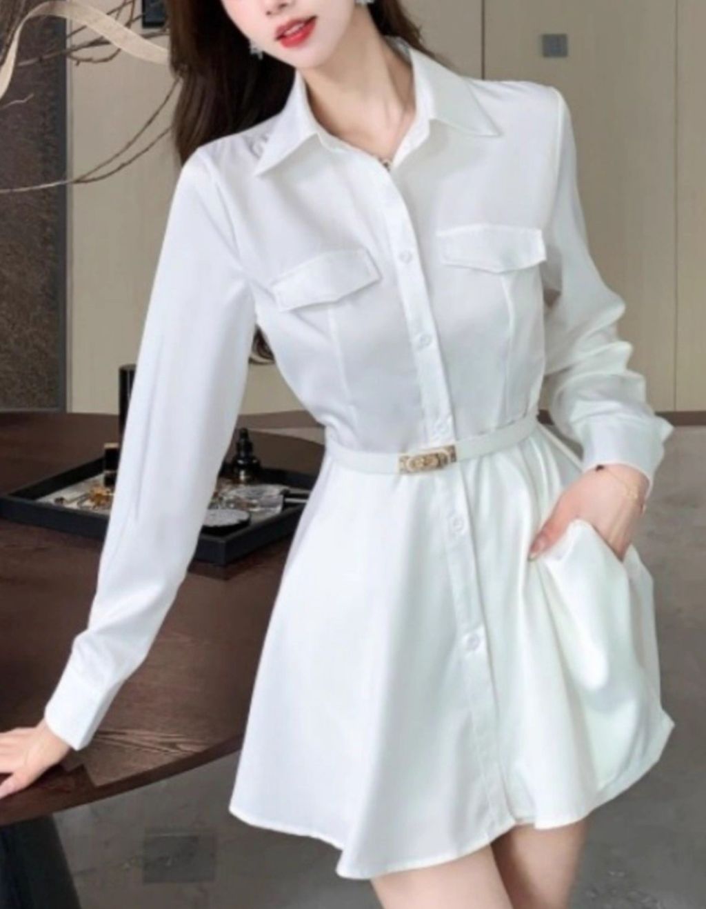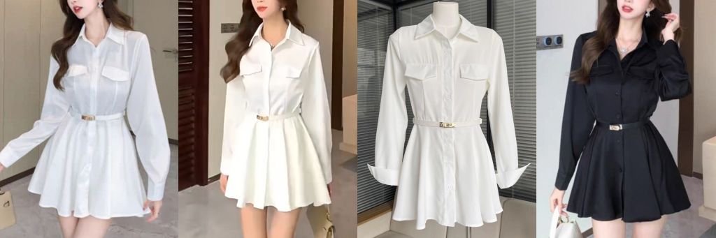 ❤️ 105용 블라우스룩 하의실종느낌 풀버튼 원피스(+허리벨트) 1.5 흰색, 검정