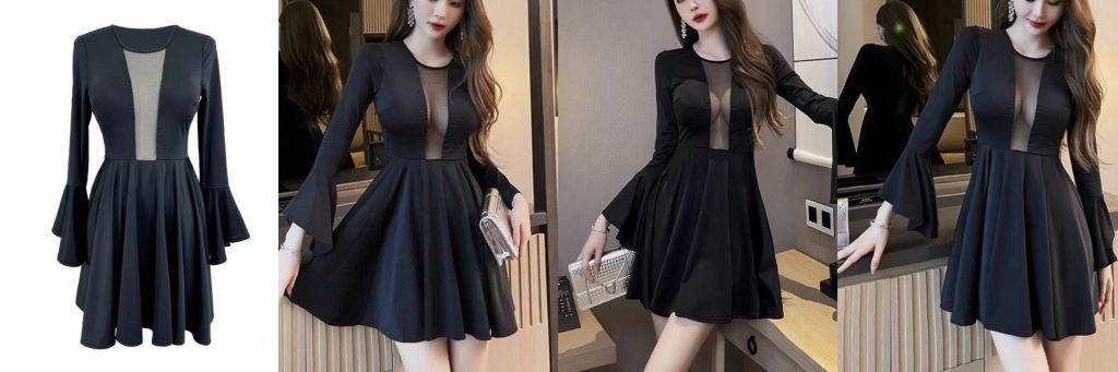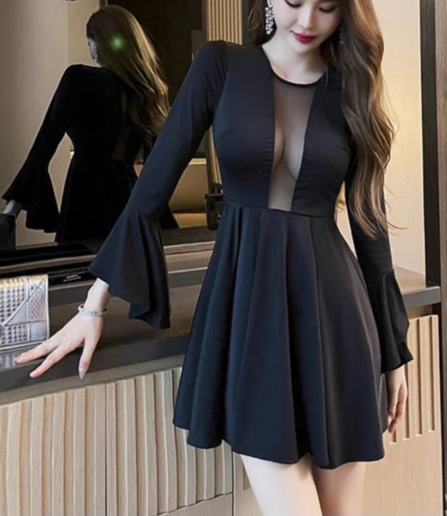 ❤️가슴중앙망사 플레어 원피스1 잘늘어나구요 배없으신 100~105, 105이신분이 좋을듯하구요.