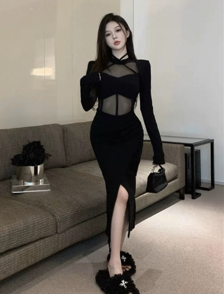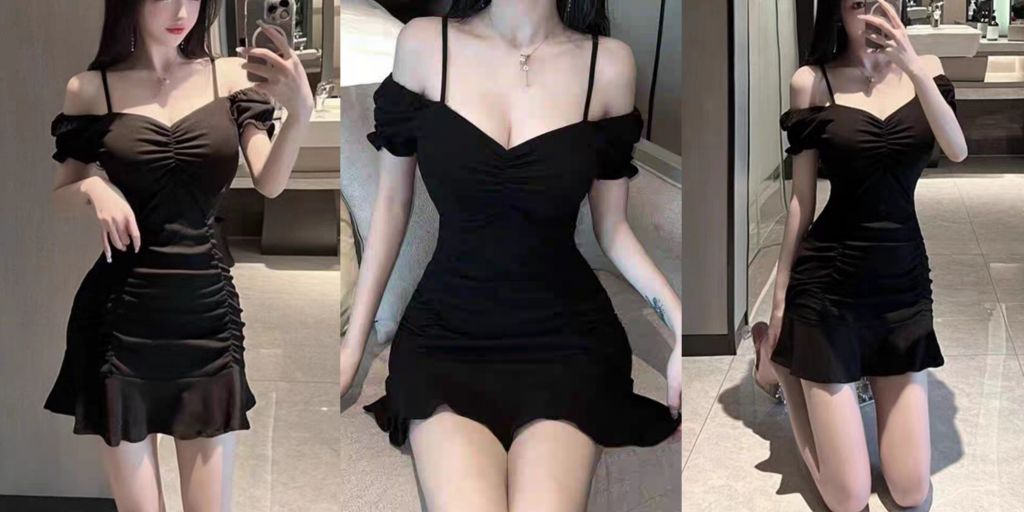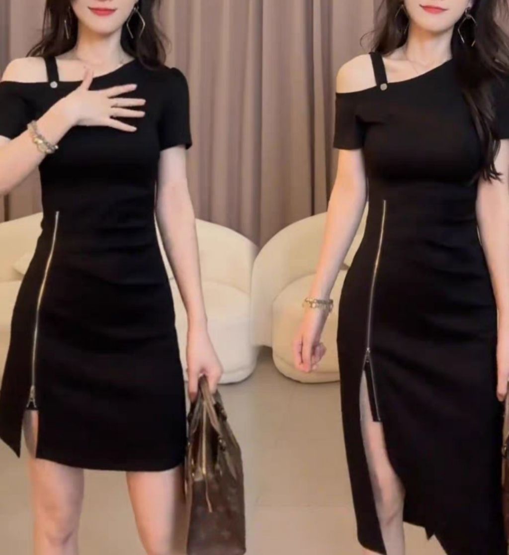단품 ❤️롱 노출지퍼 오프숄더 원피스1