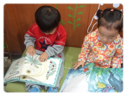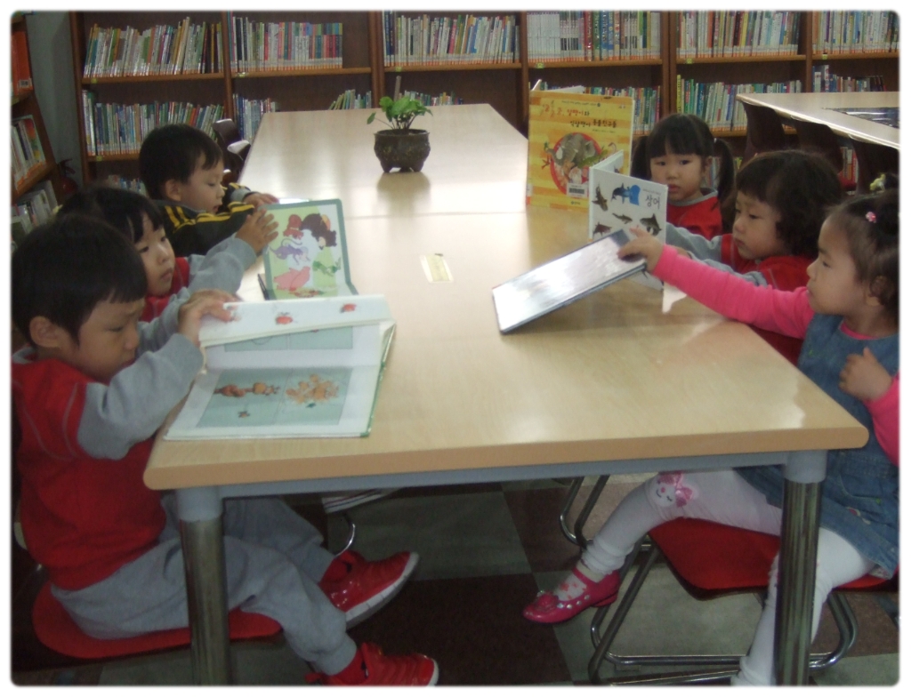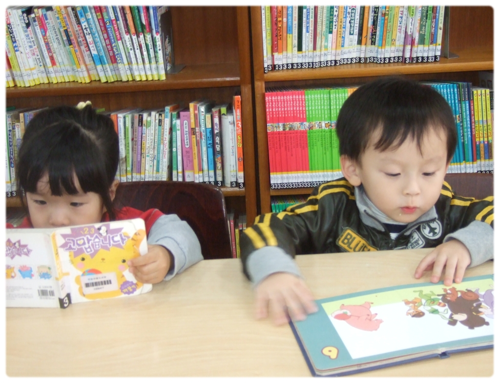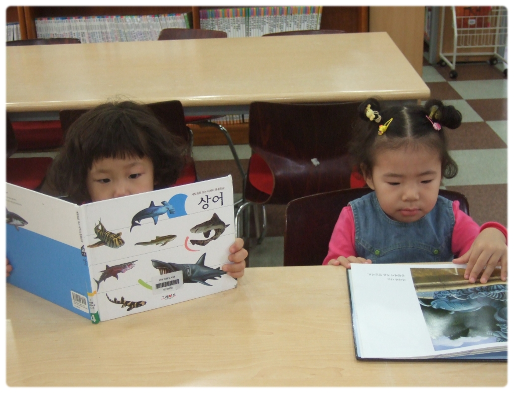 우리 친구들과 오늘 마을도서관을 방문하여 읽고 싶은 그림책을 읽고 잠시