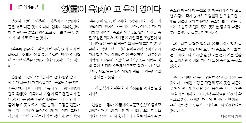[스크랩] 나를 이기는 길-영(靈)이 육(肉)이고 육이 영이다 작성자천사|작성시간19.08.14|조회수7 목록 댓글 0 글자크기 작게가 글자크기 크게가 다음검색 스크랩 원문 : 무지개이슬 현재 게시글 추가 기능 열기 북마크 공유하기 신고 센터로 신고 댓글 댓글 0 댓글쓰기 답글쓰기 댓글 리스트