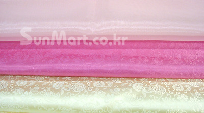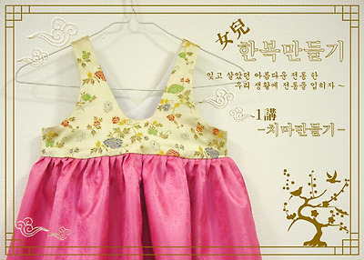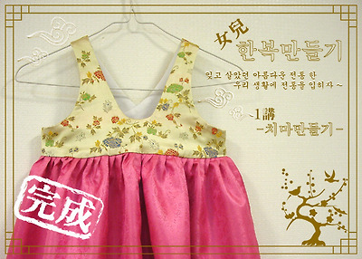 | 재료준비 : 6세여아 한복감- 저고리감(연노랑 양단-폭 60cm ) 2마, 치마감(연분홍 양단-폭 60cm)4마, 안감 (연분홍 -폭 44")3마, 조끼허리감(면 백색-폭 44") 1마 |