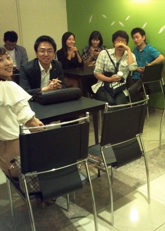 와.. 형 정말 재미있으시고 좋으신 분 같아요! 그 때 처음으로 봿는데.. 브루스 형과는 어떤 관계이신지...!? 회사 동료?! 정말 웃기셨어요..ㅎㅎ 재미있고:) 항상 어디가시면 분위기 메이커이실 것 같은 기분이랄까!? 정말 멋지고 재미지신 분! 처음 오셔서 뉴커머 소개를 시켜드렸는데 영어도 어느정도 하시는 느낌 ^^ 다음주에 더 많은 재미를 가지고 와주세요^^