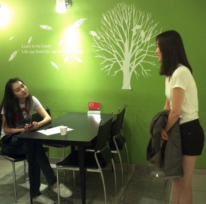 누나~ 그저께는 머리를 다시 풀고 오셨어요:) with 클래식한 복장으로!! 복고풍의 복장! 근데 진짜 그렇게 추웠어요?! 누나 항상 13번방에서 하기 싫다고.. 춥다고 해요...왜...첫번째 시간 끝나면 항상 A/C끄니깐 너무 걱정말고!! 그냥 하시면 됩니다:) 알았지요:)? 누나 승무원 준비는 잘 되어가고 있는건가요?! 제 여자친구도 승무원 준비해서 승무원 얘기를 한거니깐 절 날카롭게 쳐다보지 마세요:)