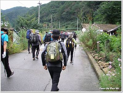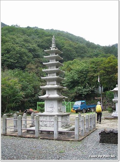 9월 22일 토요일에 아침 06시 집을 나서는데 날씨가 흐린 듯 하더니 배후령을 지나서 양구로 접어드는데 정말로 흐린다. 10시 53분 웅진상회앞을 지나서 등산을 시작한다. 처음은 평평한 도로를 따라서 올라가서 11시 19분 신정사를 들려서 사진을 몇장 찍고 계속해서 올라간다.