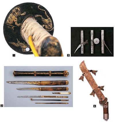 “한 면은 평평하고 다른 한 면은 중간 부분이 각진 형태로 배가 나온 것이 많다. 이는 칼의 절삭력을 극대화시켜주는 구조다. 칼집은 중국보다는 단순하지만 다양한 재료의 특성을 이용해 내구성을 극대화했다. 나무 칼집 전체에 실처럼 가늘게 저민 갈대줄기를 촘촘히 감아 마감한 뒤 다시 얇게 가공한 어피(魚皮·물고기 가죽)나 저피(猪皮·돼지 가죽)로 감싼다. 마지막으로 여기에 옻칠을 응용한 주칠이나 흑칠로 마감한다. 일본·중국이 따라올 수 없을 만큼 가볍고 날씬하면서도 견고한 칼집이다.”