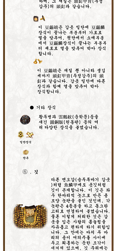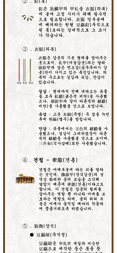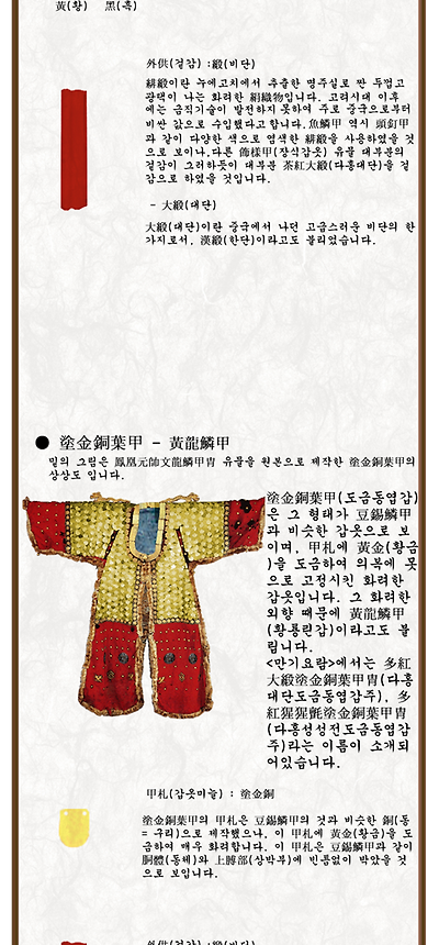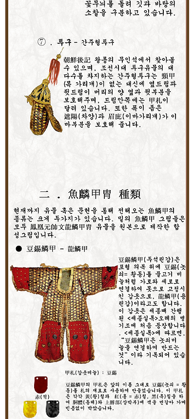 [스크랩] [기타]한국의 갑옷 소개 - 朝鮮時代 魚鱗甲胄(어린갑주)[두석린갑, 도금동엽갑] 작성자온고을 강대호|작성시간09.01.12|조회수236 목록 댓글 0 글자크기 작게가 글자크기 크게가 이 글은 朝鮮時代 飾樣甲(장식갑옷) 중 가장 화려한 갑옷으로 알려져 있는 魚鱗甲을 소개하는 글입니다. * 이글은 펌글이 아님을 밝힙니다. 다음검색 스크랩 원문 : THIS IS TOTAL WAR 현재 게시글 추가 기능 열기 북마크 신고 센터로 신고 댓글 댓글 0 댓글쓰기 답글쓰기 댓글 리스트