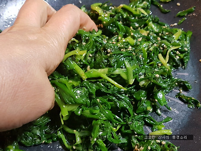 ㉡ 깨소금, 참기름, 액젓을 넣고 조물조물 무쳐주면 완성된다.
