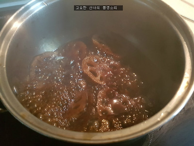 ㉡ 간장, 맛술, 매실진액, 물을 넣어 졸여준다.