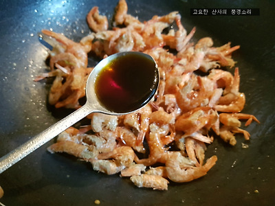 ㉠ 건새우는 이물질을 제거하고 먼저 볶아준 후 진간장, 물을 넣고 볶다가 잣을 넣어준다.