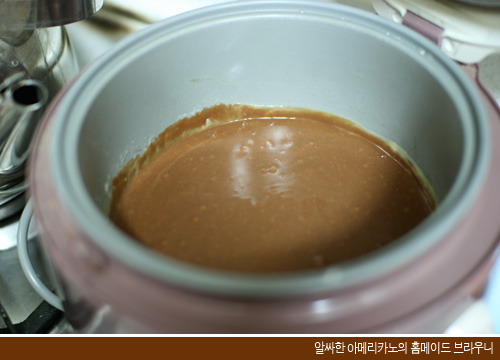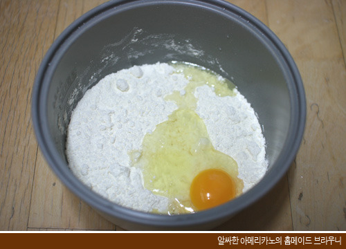 다른 그릇에 반죽하고 밥통 용기에 넣어 주신 분들은 상관 없지만, 저처럼 밥통 용기에 직접 반죽을 만드신 분들은 용기 주변에 불필요 하게 묻은 반죽을 깔끔히 정리해 주고 밥통에 넣어줍니다. (그래야 완성 되었을 때 모양이 예쁘게 나와요)