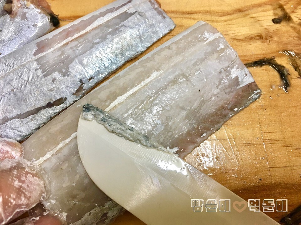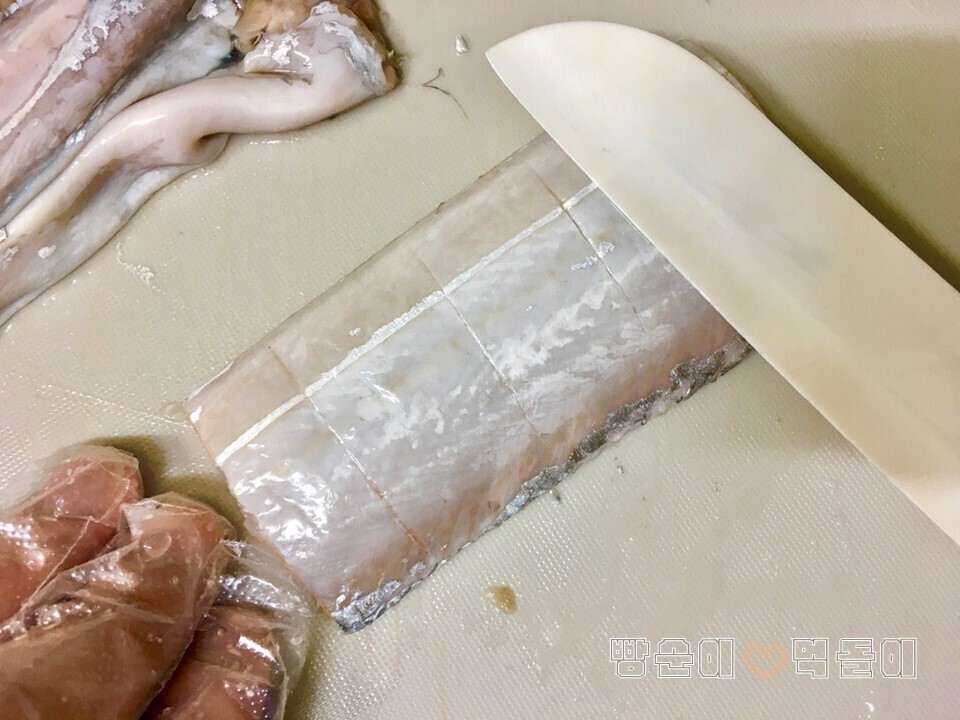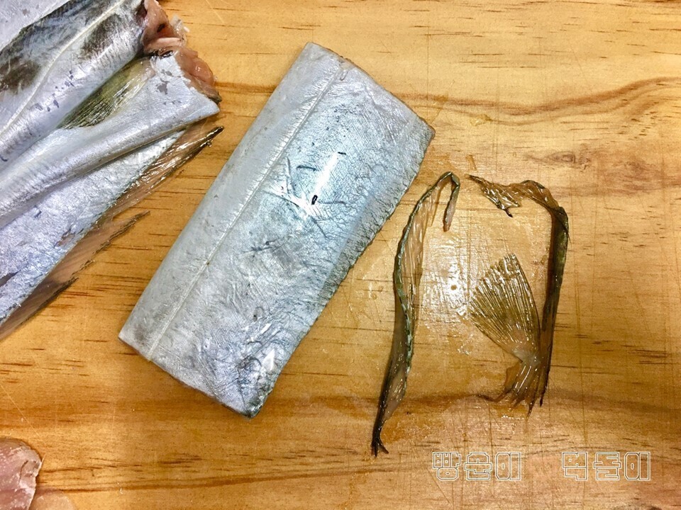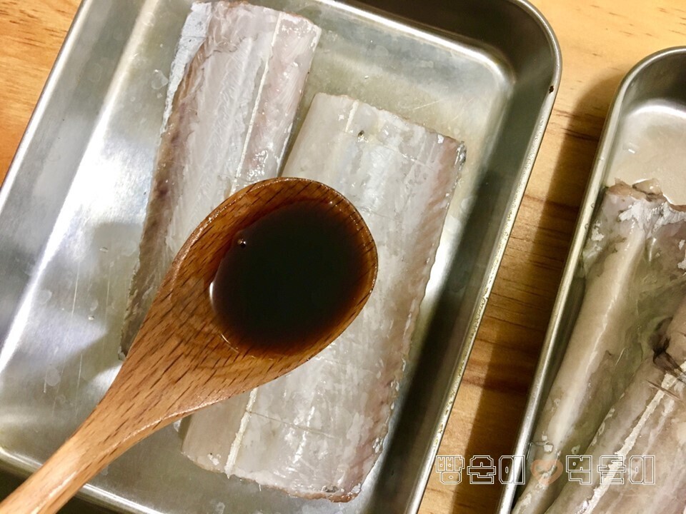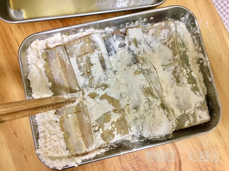 | 갈치구이 맛있게 하는 방법 및 갈치손질법 오늘 소개할 레시피는, 많은 사람들에게 사랑받는 생선! 갈치요리예요. 바로...! 갈치구이 맛있게 하는 방법을 소개합니다. 아울러, 갈치손질법도 같이 설명드릴게요. 갈치구이는, 한국인의 밥상에 정말 자주 올라오는 단골 인기 메뉴지요. 갈치라는 생선으로, 해 먹는 요리 방법은, 갈치조림과 갈치구이 두 가지인데요. 어떻게 해 먹어도 정말 진정한 밥도둑입니다요~^^ 기본적인 갈치 손질에서부터, 정말 맛있게 갈치구이를 만드는 레시피를 소개하겠습니다. 참고로, 얼마 전 알토란이라는 방송에서 소개해줬던 레시피를 참고해서 말씀드릴게요~ 잘 따라 하신다면, 진정한 효자 레시피가 될 수 있으실 거라 확신합니다^^ 요리를 시작하기 전에, 좋은 갈치를 구입해야겠죠? 내장을 제거하고 먹기 좋은 크기로 잘 등분해놓은 갈치를 구입하시면 되는데요. ▲ 저는 얼마 전, 인터넷으로 구입 했어요. 한 마리당 4등분으로 포장되어서 배송되는 제품 이었어요. 압축포장이라 냉동보관 하면 꽤 오랜 기간 보관할 수 있다는 장점이 있네요. 여러분들도 각자 좋은 갈치를 잘 구입하세요! ☞ 자! 그럼 요리를 시작해요!!! 먼저 재료들을 소개합니다. 간단히 메모를 준비해보세요. ♣ 재료 소개 ♣ (계량 : 1큰술 - 밥숟가락 기준) 모든 재료 : 갈치 1마리 (4등분). 굵은 소금 1큰술. 식초 1큰술. 간장 1큰술. 맛술 1큰술. 식용유. ♣ 갈치구이 맛있게 하는 방법 ♣ ① 갈치 손질하기 ② 염지 하기 ③ 양념하고, 반죽하기 ④ 팬에 갈치 굽기 ⑤ 완성 ① 갈치 손질하기 ▲ 갈치 손질 과정은 필수 입니다. 왜냐하면, 보통 갈치 를 구입하면, 내장 제거와 등분 정도만 해주기 때문이죠. 손질과정을 잘해 주어야 비린내 도 안 나고 더 맛있어집니다. 우선, 옆에 남아있는 지느러미들 을 가위를 이용해서 모두 제거해주세요. 그리고, 혹시 모를 제거가 안된 내장이 있다면 모두 빼내주세요. ▲ 그리고, 은빛 나는 몸통부분을 칼을 이용하여 긁어주세요. 이 과정도 잘해주시면, 비린내 를 잡는데 큰 도움이 돼요. ② 염지 하기 ▲ 갈치를 염지 하는 과정입니다. 이 부분은 알토란에서 소개된 내용이에요. 손질이 끝난 갈치를 소금물에 약 10분 정도 담가주세요. 그리고 난 후, 식초에 잠깐 1분 정도 담가 두었다가 빼면 끝입니다. 식초에 담그면 살균 효과가 있다고 하네요. ③ 양념하고, 반죽하기 ▲ 양념, 반죽 들어가기 전에, 먼저 여러 군데 칼집을 내주세요. 그래야 양념이 잘 흡수됩니다. 양념은 간장 1큰술과 맛술 1큰술 을 입혀주면 됩니다. ▲ 그리고, 밀가루에 입혀줍니다. 알토란 방송에서는 밀가루와 쌀가루를 같이 사용하라고 권장해요. 그런데, 밀가루만 사용하셔도 충분 합니다! ④ 팬에 갈치 굽기 ▲ 팬에 식용유 두르고, 갈치를 구워주세요~! ▲ 앞, 뒤로 돌려가며 꾹꾹 누르면서 속까지 잘 익혀주세요! ⑤ 완성 ▲ 고소하고 바삭한 맛있는 갈치구이가 완성되었습니다. 맺음말 : 갈치구이 맛있게 하는 방법 에서, 기억해볼만한 포인트는, 염지 과정을 꼭 거쳐는 것 입니다. 잘 숙성돼야 비린내도 안 나고 맛있어요. 그리고, 맛술 넣어주는 것도 중요한 TIP이에요. 어떤 요리이던지, 맛있게 먹기 위해서는 정성과 시간이 많이 들어가죠? 그냥 무조건 굽는 것보다, 오늘 소개한 모든 레시피 과정들을 거치고, 마지막 밀가루 반죽까지 해주신다면 정말 바삭하고 맛있는 갈치구이를 드실 수 있을 겁니다~! 출처 : 빵순이 먹돌이 요리학교 |