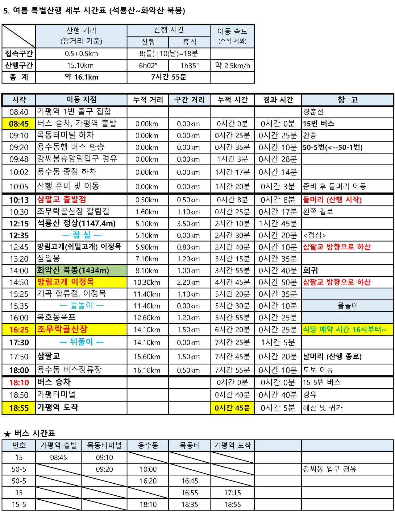 4) 산행은 본인 체력에 맞게 하시고 중도 하산은 각자 판단에 따라 하시면 됩니다.