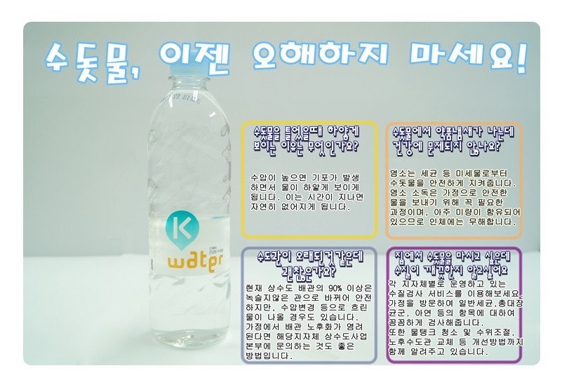 어려서부터 어른들이나 주위 사람들로부터 ‘수돗물은 더럽다’ ‘수돗물은 끓여서 먹어야한다‘ 등 수돗물에 대한