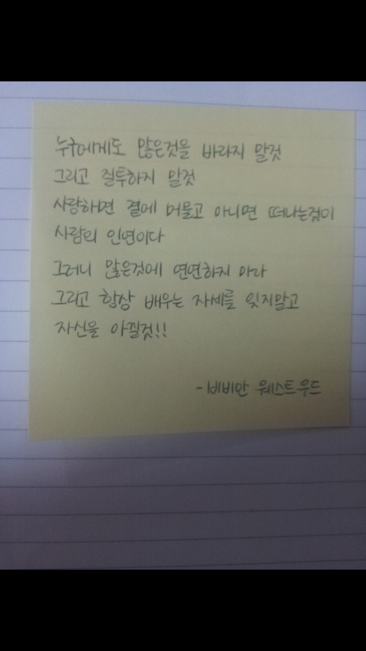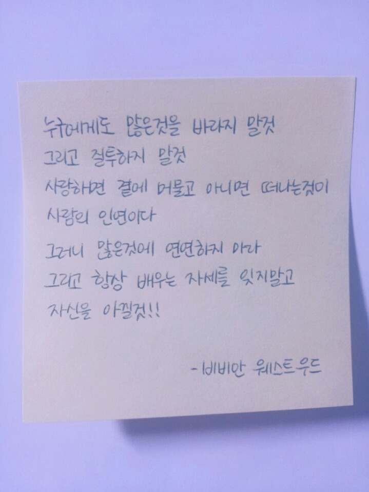 [스크랩] [생활 노하우]포스트잇 메모 반듯하게 쓰는법!! 작성자샤이|작성시간14.12.07|조회수437 목록 댓글 0 글자크기 작게가 글자크기 크게가 별거 아니라 쓸까말까 하다가 올리라고해서 올려요☞☜포스트잇을 저렇게 노트 선 비치는데 맞춰서 글씨쓰면 반듯반듯 하다능.. 다음검색 스크랩 원문 : 쭉빵카페 현재 게시글 추가 기능 열기 북마크 신고 센터로 신고 댓글 댓글 0 댓글쓰기 답글쓰기 댓글 리스트