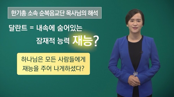한기총 소속 순복음 교단 목사님은 달란트에 대해 내 속에 숨어있는 잠재적 능력 재능?이라