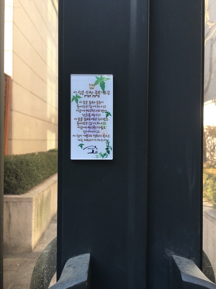 이 축복문의 의미가 참으로 놀라워 먼저 문설주 개념의 문패로 만들어 봤습니다.