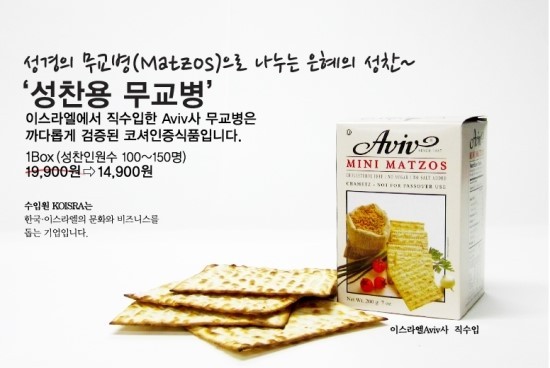 이스라엘에서 직수입한 Aviv사의 무교병을 판매하고 있답니다.