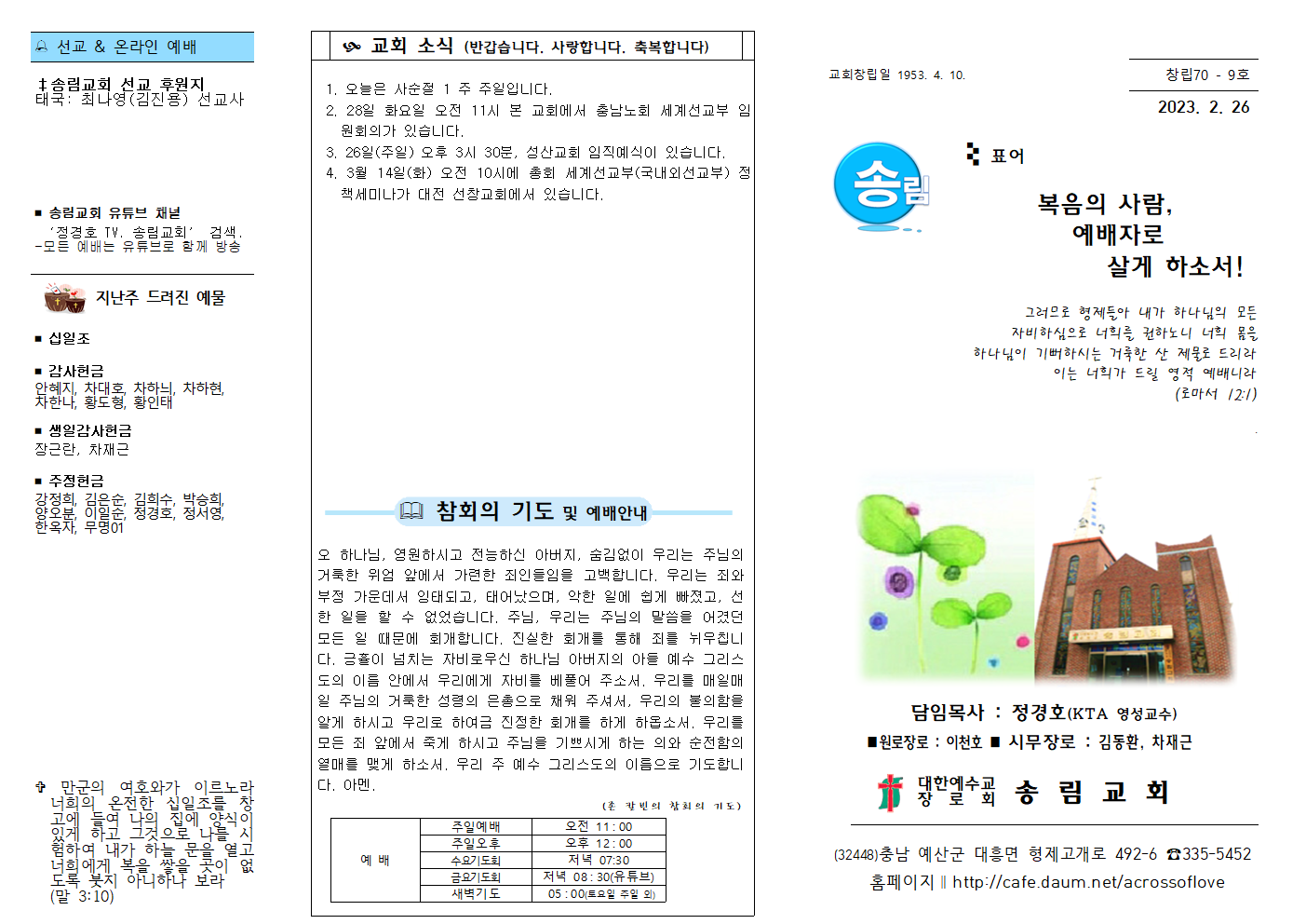 주보나눔. 2023년 2월 26일 작성자지심|작성시간23.02.25|조회수9 목록 댓글 0 글자크기 작게가 글자크기 크게가 다음검색 현재 게시글 추가 기능 열기 북마크 공유하기 신고 센터로 신고 댓글 댓글 0 댓글쓰기 답글쓰기 댓글 리스트