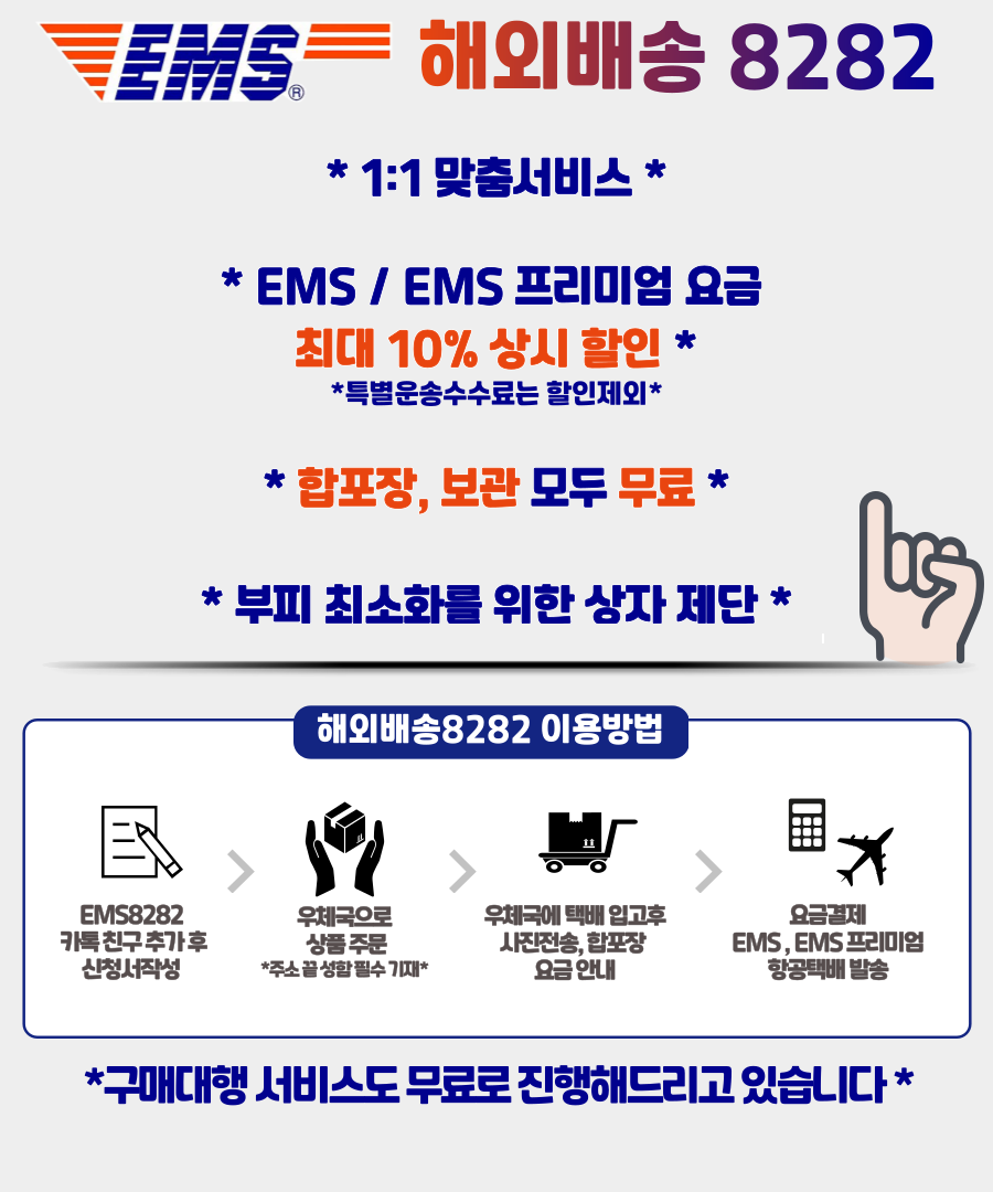 EMS/EMSํ๋ฆฌ๋ฏธ์ ์๊ธ์ ์ต๋ 10% ํ ์ธํ์ฌ ๋ฐ์กํด๋๋ฆฌ๊ณ ์์ต๋๋ค.