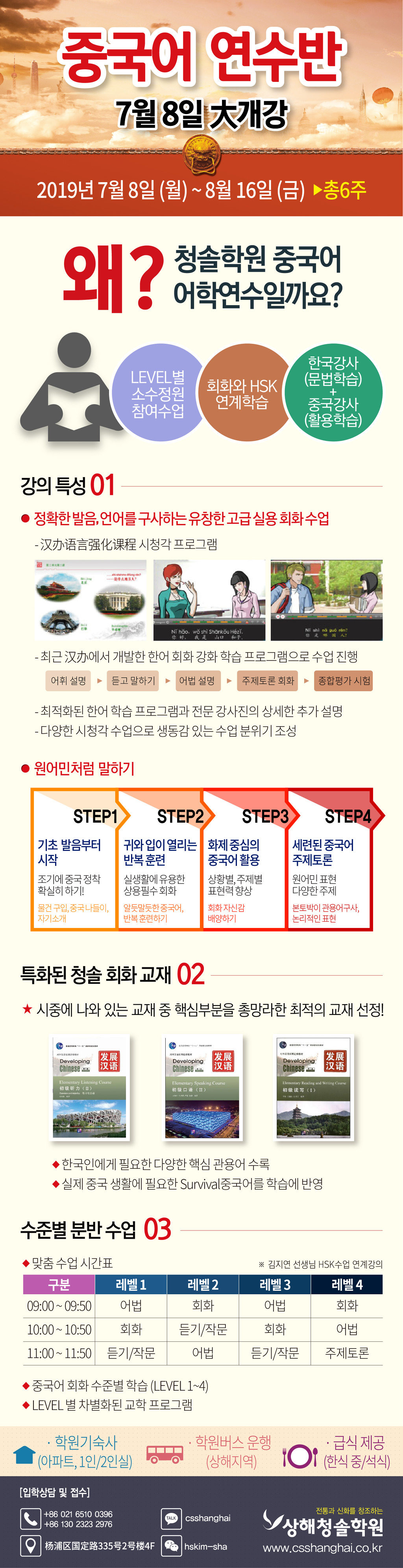 상해 중국어 교육 1등!! 상해청솔학원 여름방학 중국어 어학연수 과정을 아래와 같이 개강 합니다.