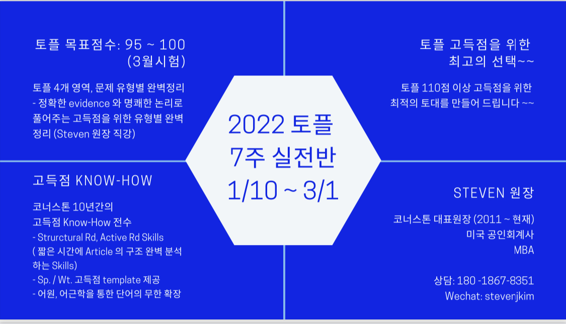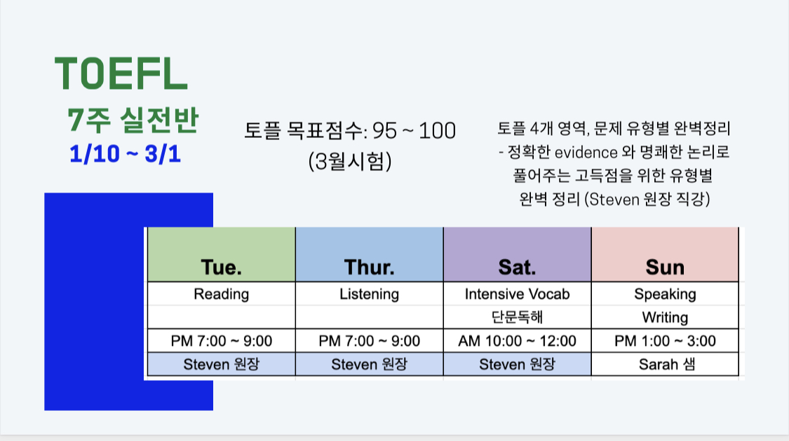 토플 3월시험 대비 7주 실전반 개강합니다 ~