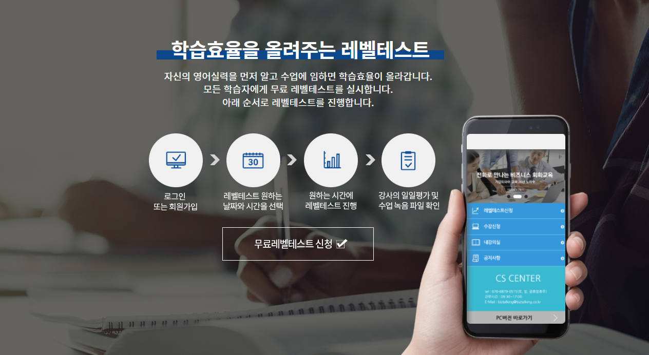 글로 설명드리는 것보다 레벨테스트는 무료로 진행해 드리고 있으니