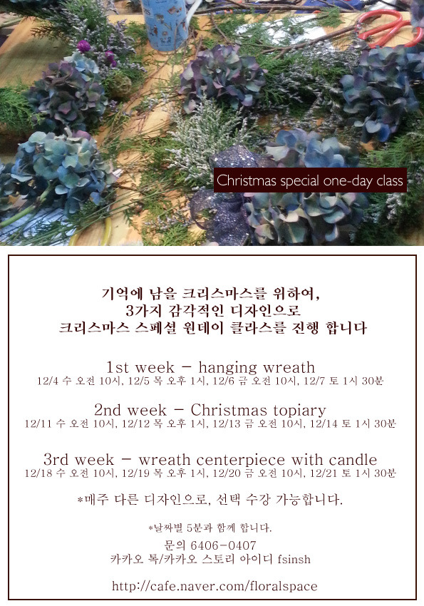 크리스마스 스페셜 원데이 클래스가 진행되는 장소입니다. ^^