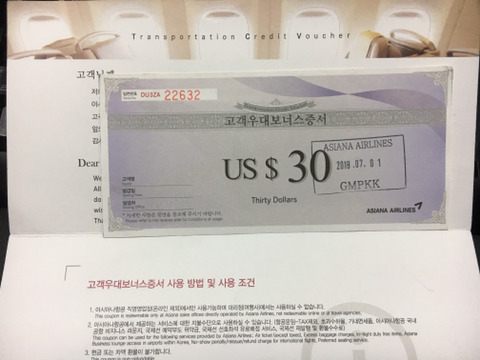 2019년 6월 30일까지 아시아나에서 현금처럼 사용가능한 $30불짜리 바우처 100원에 판매합니다(기내면세품 구매사용가능)