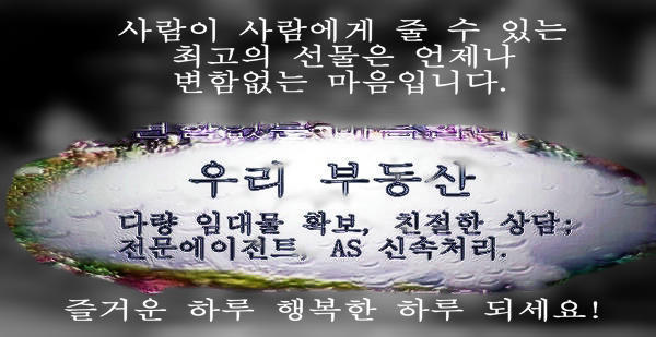 또한 좋은 임대물, 정성으로 고객님들의 지지와 기대에 보답하겠습니다.
